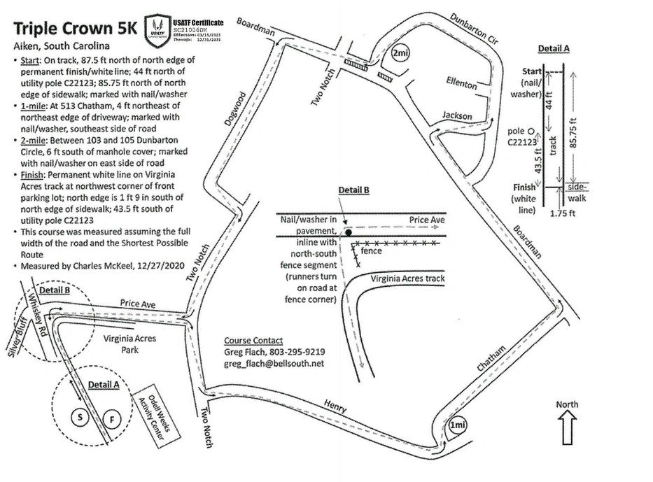 The 5K will utilize the USATF certified course #SC21006DW located at TBred 5K